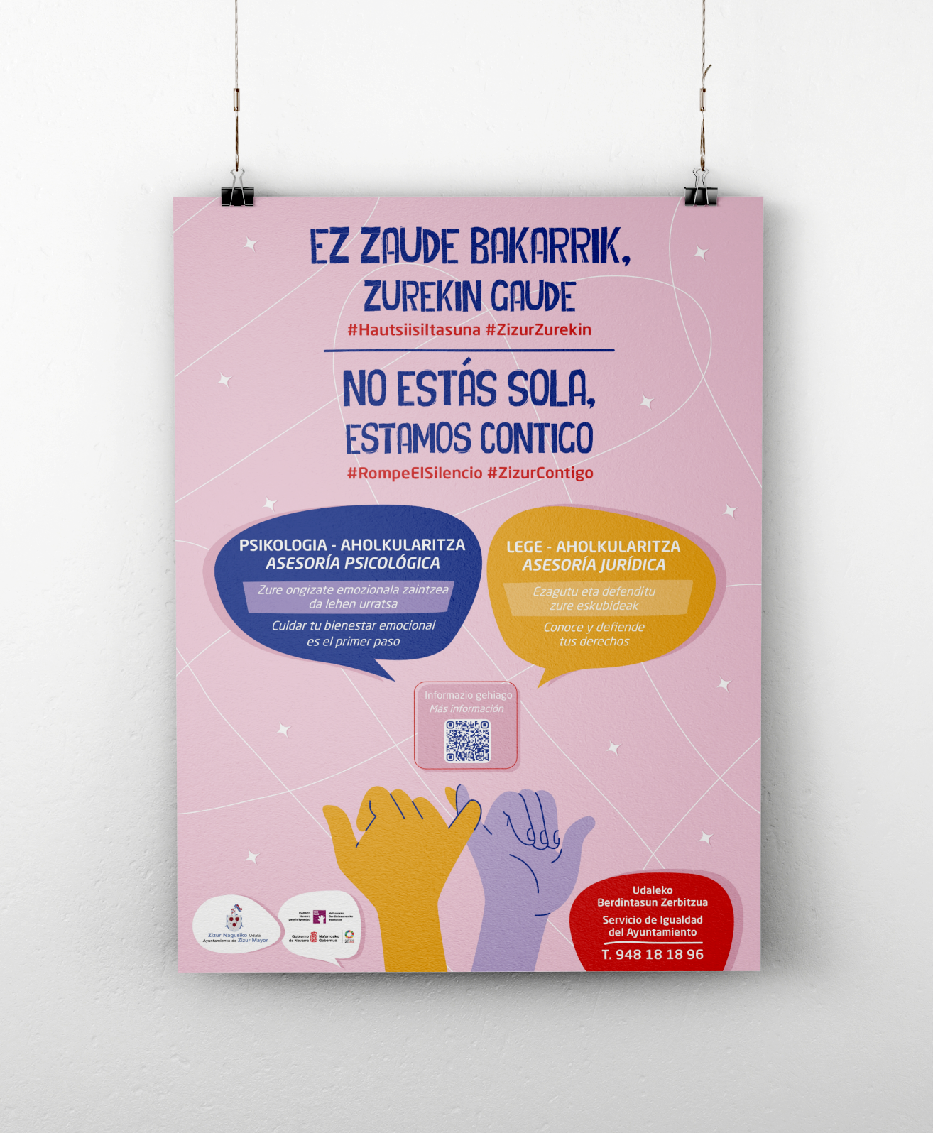 Dentro de los diferentes servicios que el Ayuntamiento de Zizur Mayor ofrece a la ciudadanía, en este proyecto se trabaja la campaña frente a la violencia de género, un servicio público gratuito de atención especializada tanto en el ámbito psicológico como jurídico para mujeres con necesidades generada por las desigualdades de género.